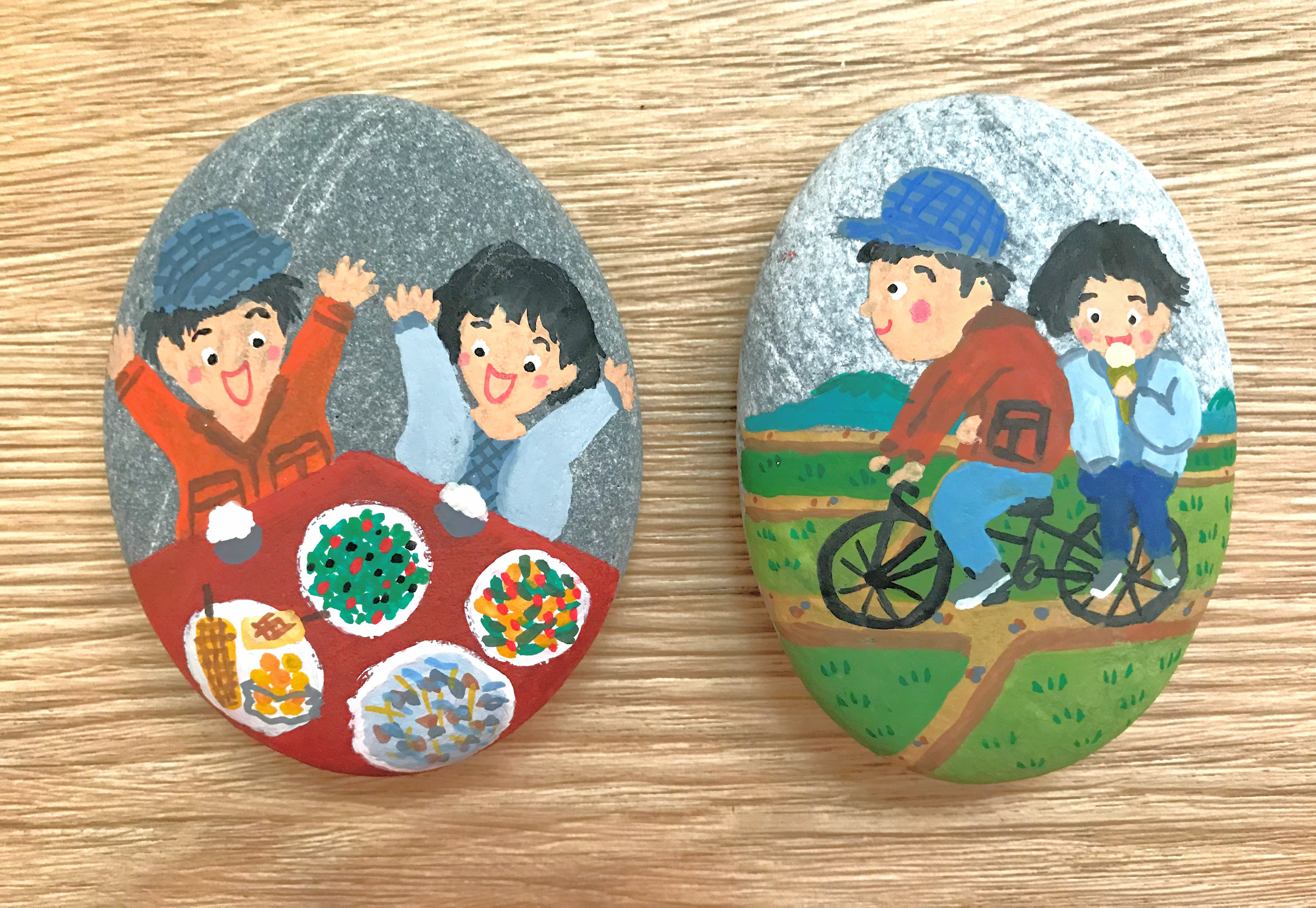 Stone paintings capturing some of my favorite memories with petit ami.